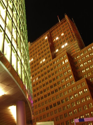Para fechar o segundo dia (primeiro completo) passado em Berlim, fomos visitar a histórica Potsdamer Platz, localizada a menos de 1 km da Porta de Brandenburgo. Desde a razia total provocada pela guerra, esta praça transformou-se na La Défense berlinense. Talvez não tão magnífica como a original, e certamente menos densificada, mas mesmo assim digna de se ver; sobretudo à noite, com os prédios todos iluminados, é impressionante.