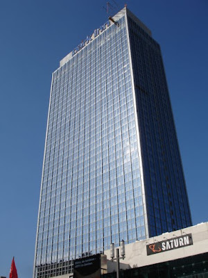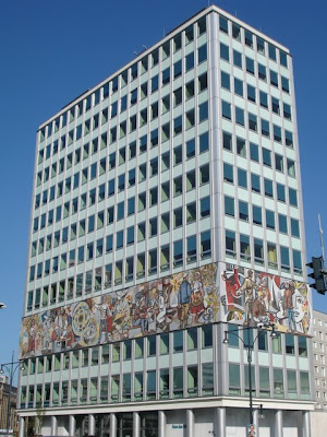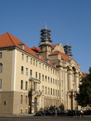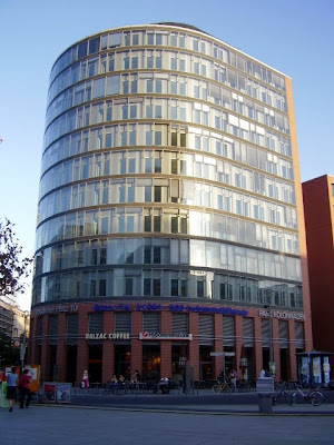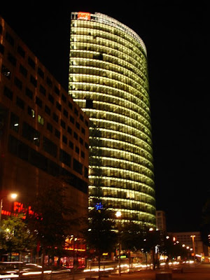 Apanhámos a U2 em Alexanderplatz e, poucas estações depois, saímos dos subterrâneos para o átrio de um dos prédios que faz esquina com a praça. Logo aí, o nosso olhar foi logo apanhado pelo edificado de estética moderna e, sobretudo, alto. Coisa rara por cá... Do lado direito, visão aberta para Leipziger Platz, outra enorme praça com um curioso formato octogonal.